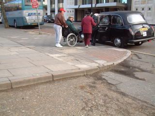 車椅子でもごく普通に乗っているのが、日本とは違い印象的です。赤帽子の人がドライバーです。